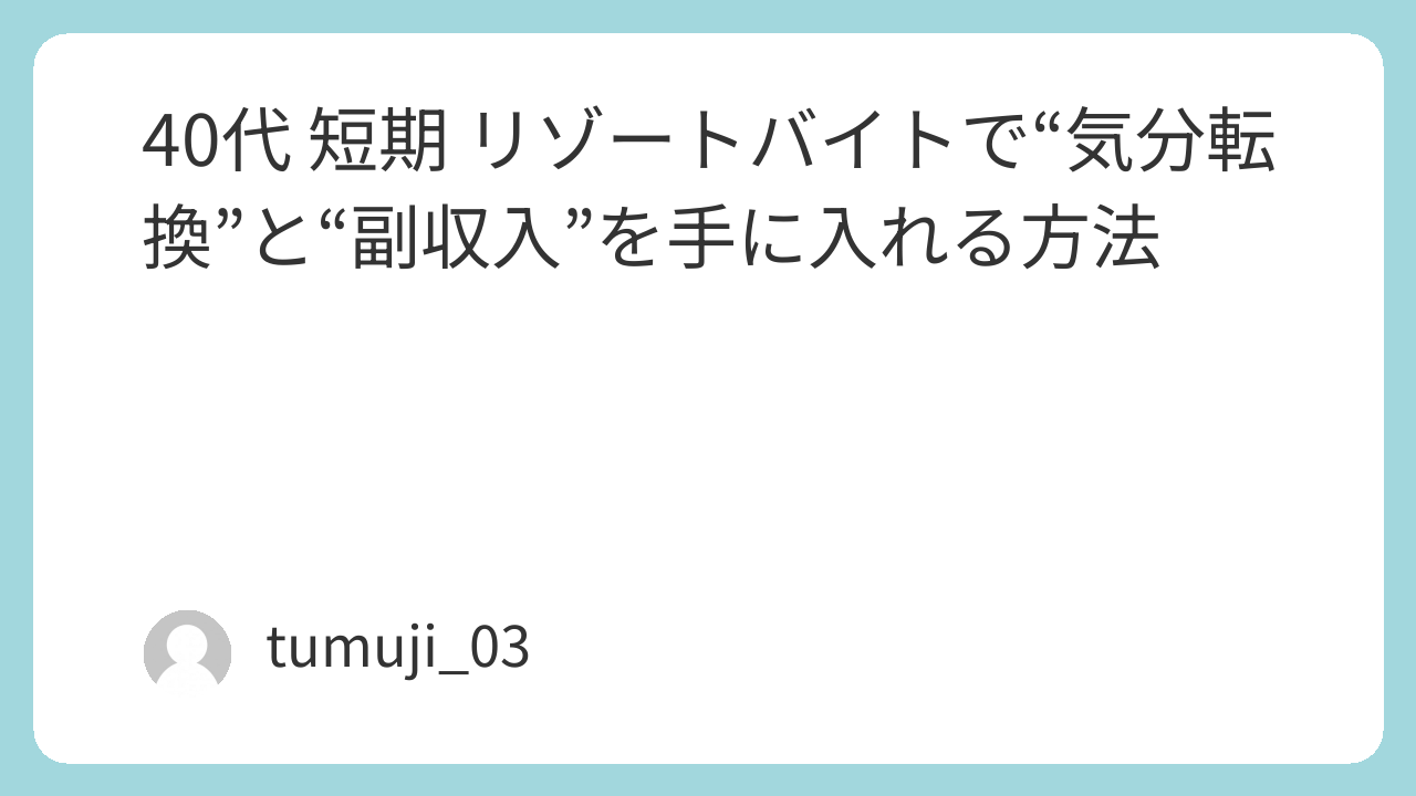 40代 短期 リゾートバイトで“気分転換”と“副収入”を手に入れる方法